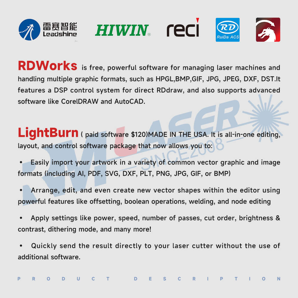 2. Laser cutting machine with RECI 100 W CO2 glass laser tube
