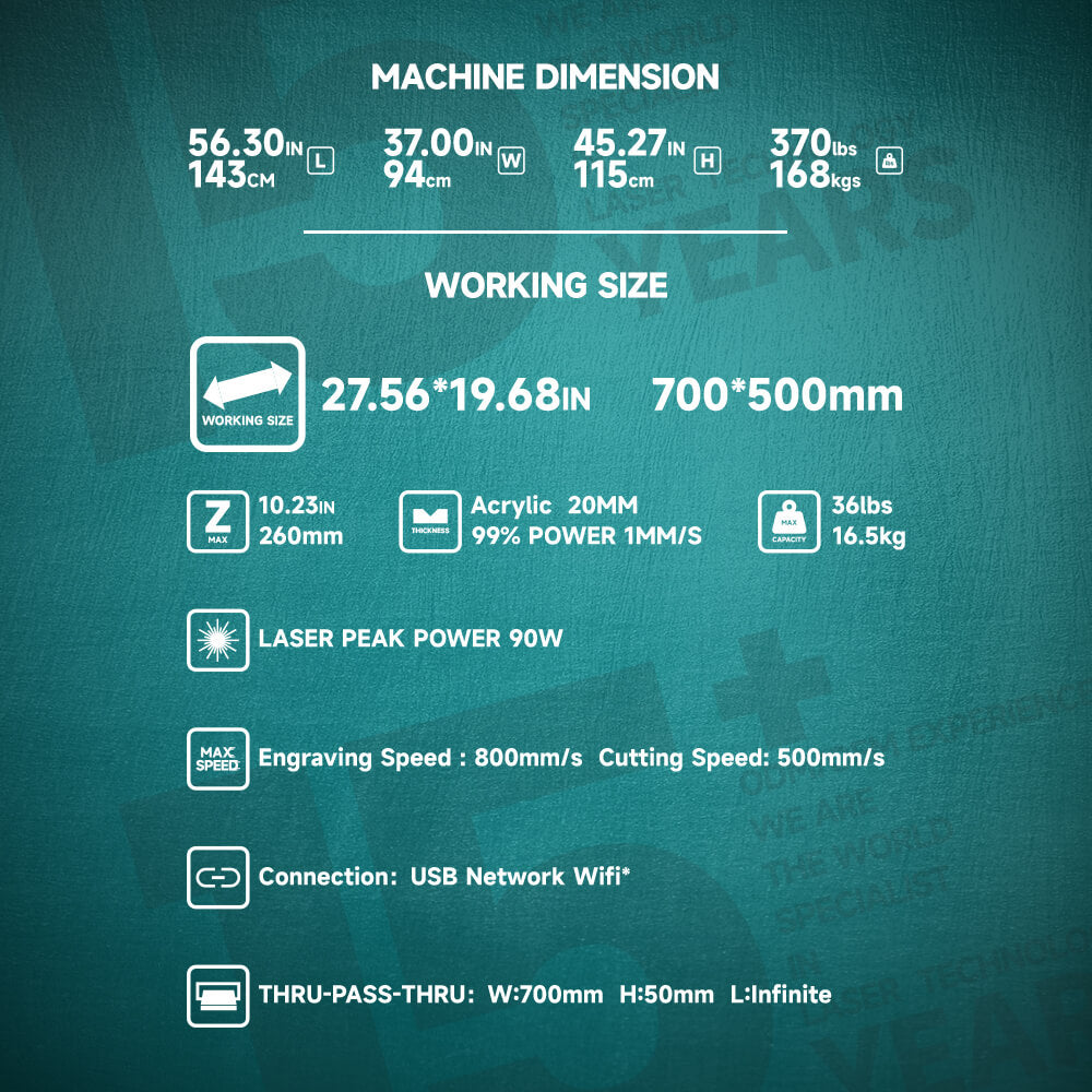 - Honeycomb & aluminum slat beds (700 × 500 mm / 27.55” × 19.68”)